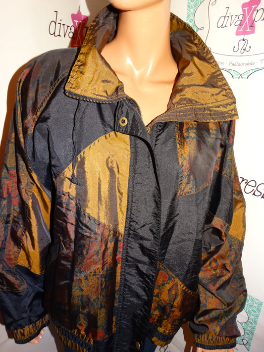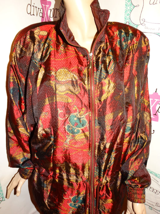 Vintage Lavon Black Silk Colorful Bomber Jacket Size 1x