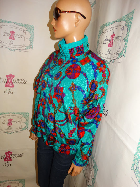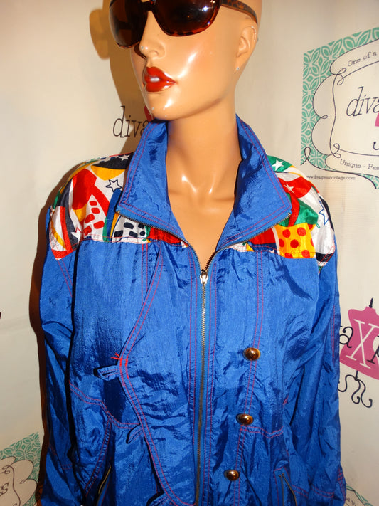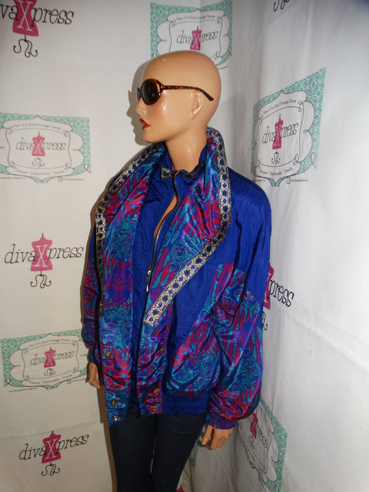 Vintage Lavon Blue Colorful Bomber Jacket Size M