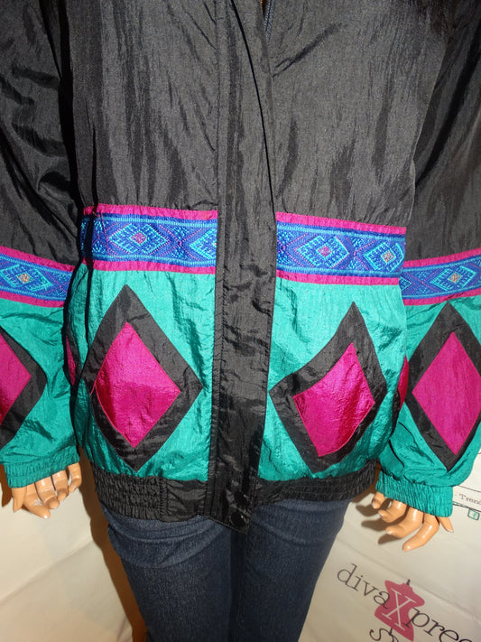 Vintage Lavon Black Colorful Bomb JAcket Size XL