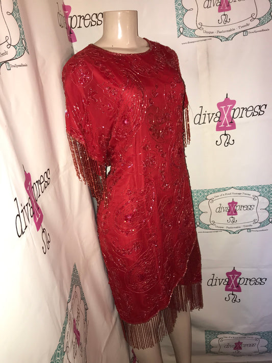 Vintage Lawerence KAzer Red Shingle Sequins Dress Size 1x