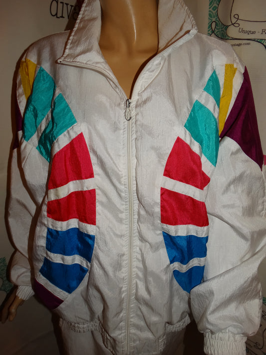 Vintage Lavon White Colorful Track Suit Size L