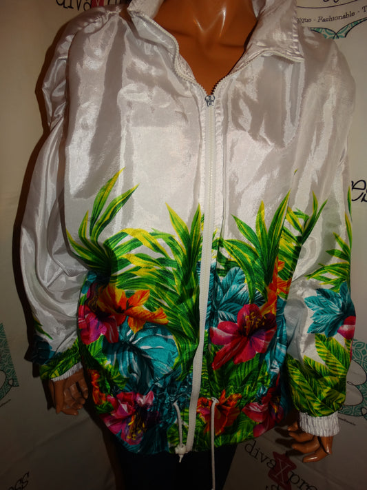 Vintage Lavon White floral Bomber Jacket Size L