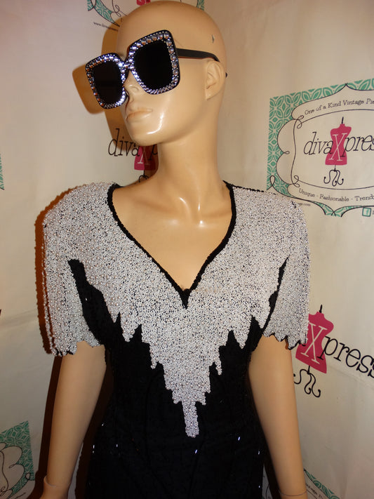 Vintage Lawrence Kazar White/Black Sequins Dress Size S