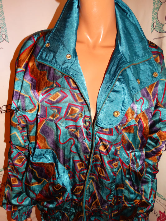 Vintage Lavon Teal Colorful Bomber Size L