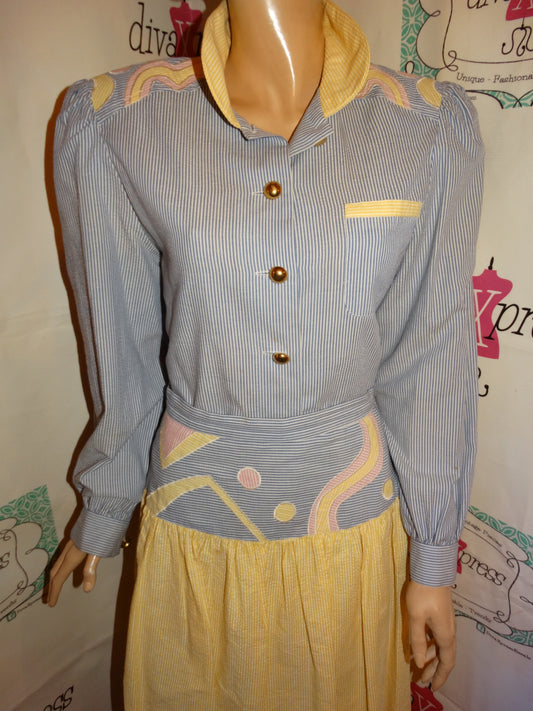 Vintage Levino Verna Blue/White Stripe Patch 2 Piece Skirt Set Size S