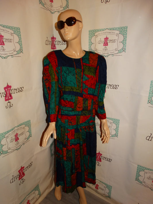 Vintage Lisa II Blue Green Colorful Dress Size 1x