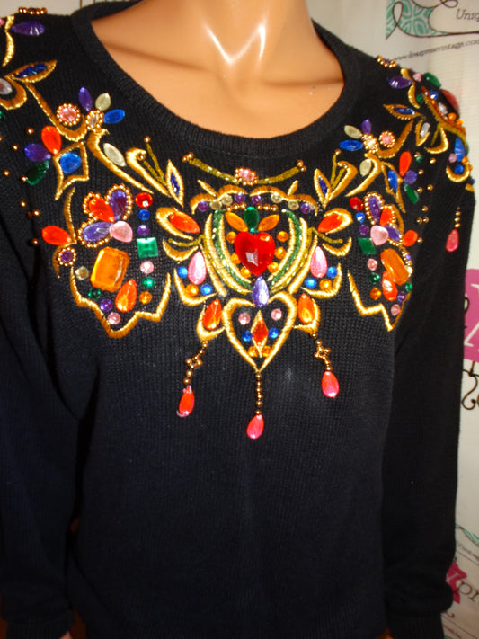 Vintage Lindsey Blake Editions Black Sequins Sweater Size XL