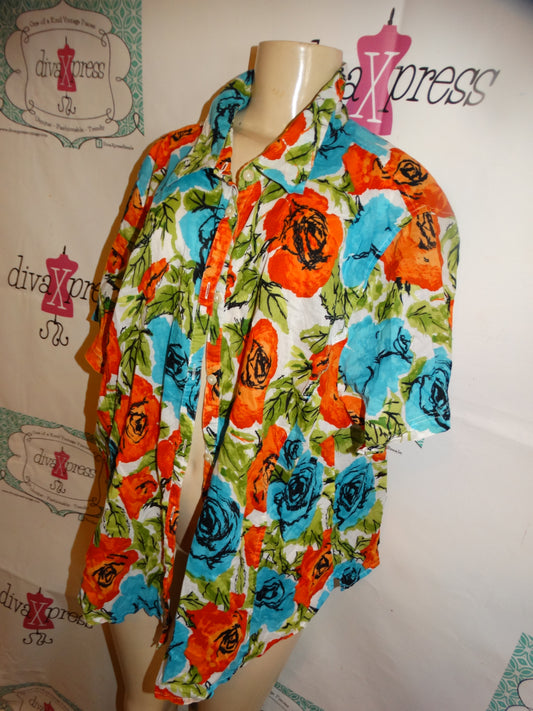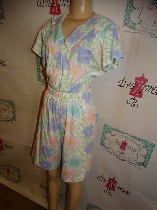 Vintage Aileen White Floral 2 Piece Short Set Size XL