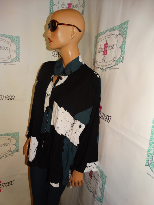 Vintage Long Black/Green White Blouse NWT Size 2x