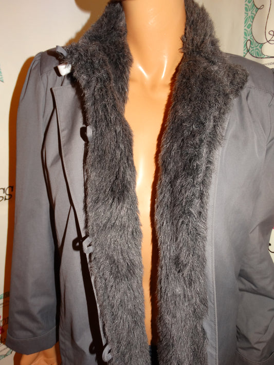 Vintage London Fog Gray Faux Fur Lined Coat Size S