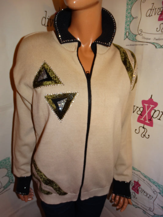 Vintage Mardel Cream/Black Beaded Sweater Size L
