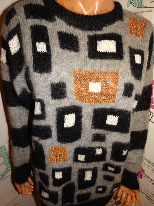 Vintage Mariel Kim Gray/Black/Gold Sweater Size M