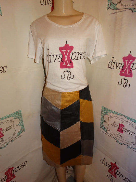 Vintage MEtrotyle Gold/Brown Leather Skirt Size M