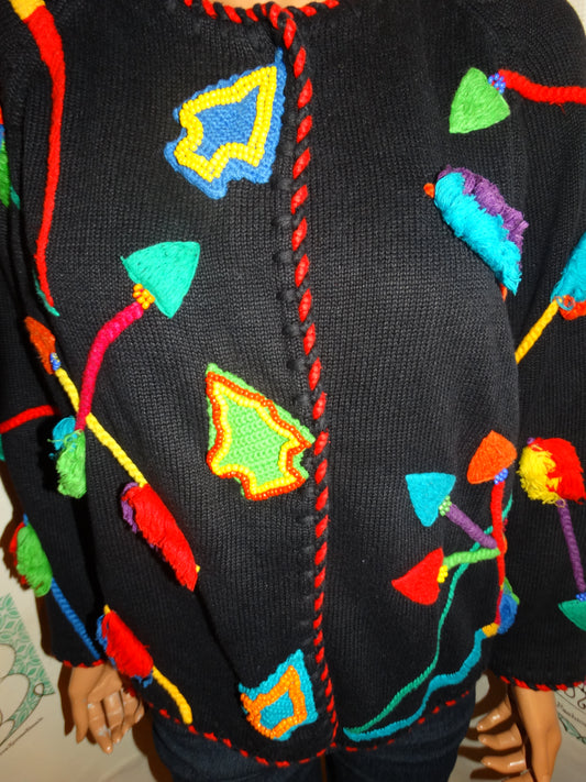 Vintage Michael Simon Black Colorful Arrow Sweater Size XL