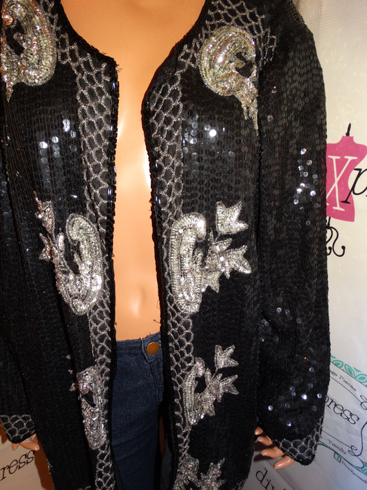 Vintage Midnight Velvet Blue Sequins Sheer Duster Size XL