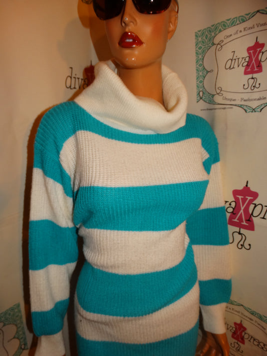 Vintage Milano TEal/White Striped Sweater Dress Size M