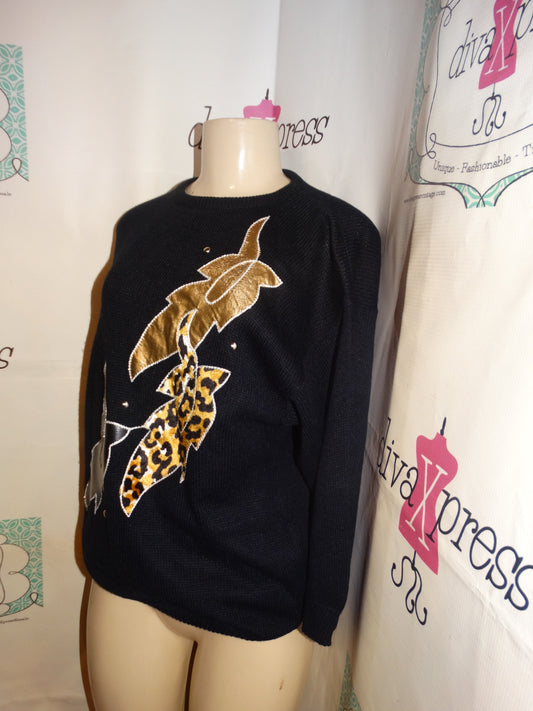 Vintage Millennium Black/Blue Chain Blouse Size M