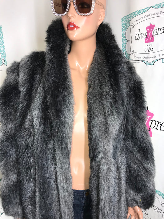 Vintage Mirage Outwear Gray/Black Faux Fur Coat Size XL