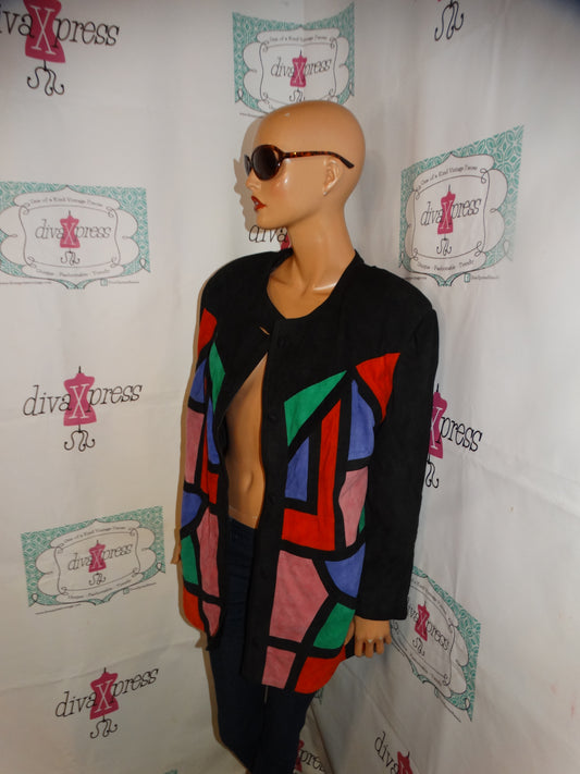 Vintage Moka Leopard/Black White Patch Long Blazer Size M