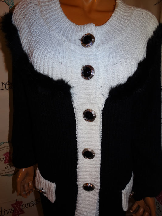 Vintage Modelia Black/White Rabbit Fur Button Up Sweater Size 1x