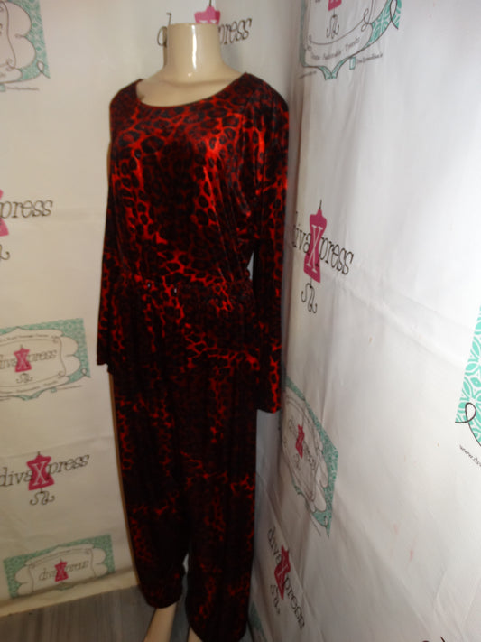 Vintage Moon Dance Black/REd Leopard 2 Piece Pants Set Size 2x