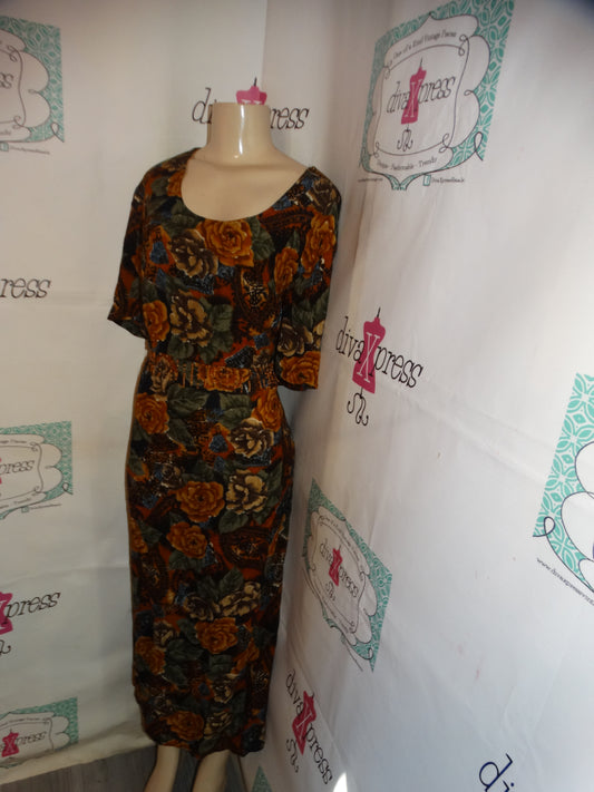 Vintage More Jazz Brown Green Floral Dress Size 2x