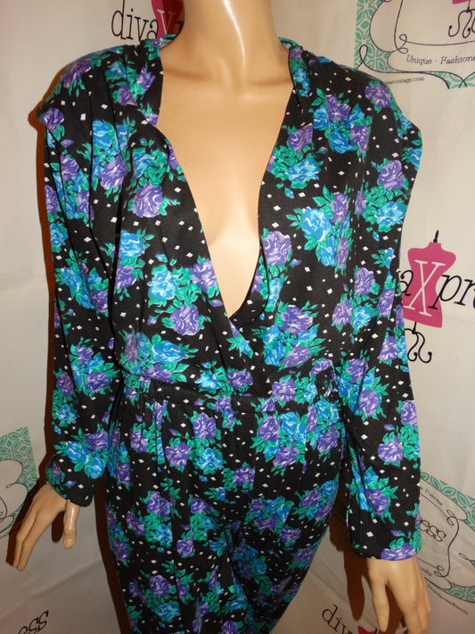 Vintage MoonCraft Black Purple Polka Dot Romper Size XL