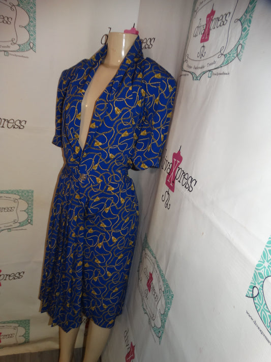 Vintage MS Chaus Blue/Gold Dress Size XL