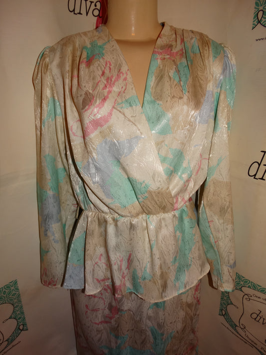 Vintage Ms. Classic White /Teal 2 Piece Peplum Size M