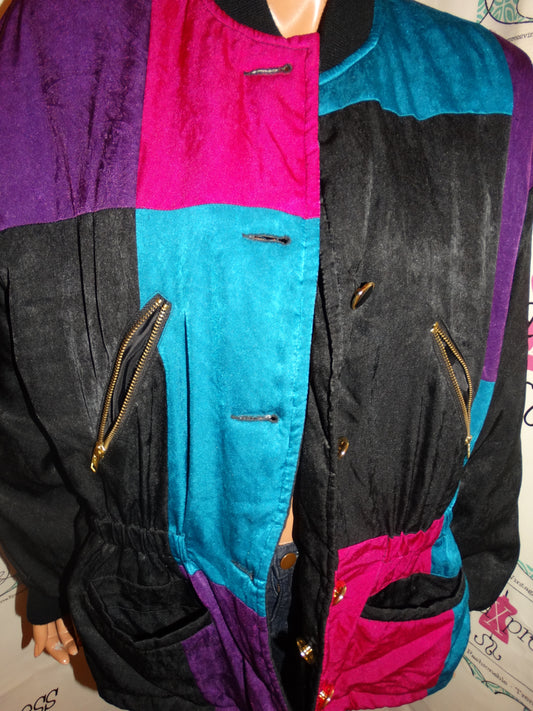 Vintage Mulberry Street Black Colorful Jacket Size L