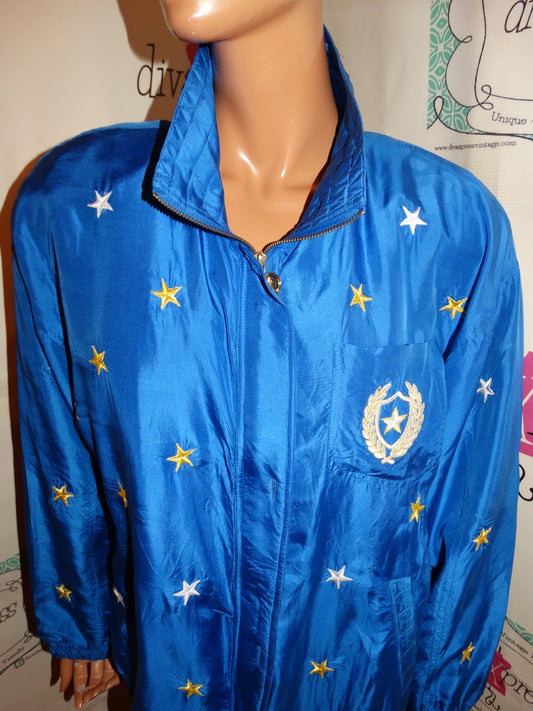 Vintage Murelli Silk Blue Bomber Jacket Size 1x