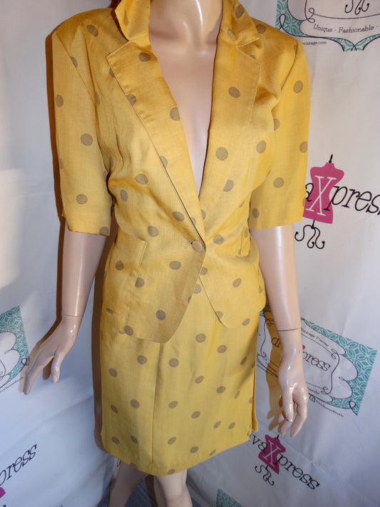 Vintage Mustard Yellow/Brown Polka Dot 2 Piece Skirt Set Size M