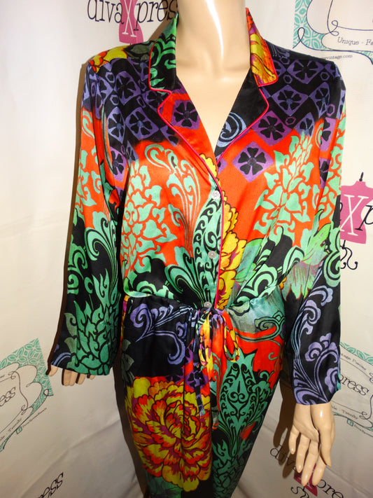 Vintage Natori Black Colorful Floral 2 Piece Set Size L