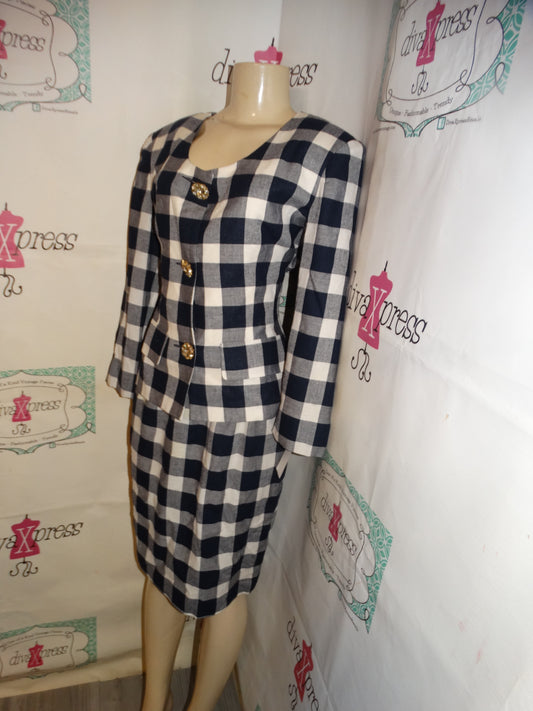 Vintage New Classics Blue/White 2 Piece Skirt Set Size M