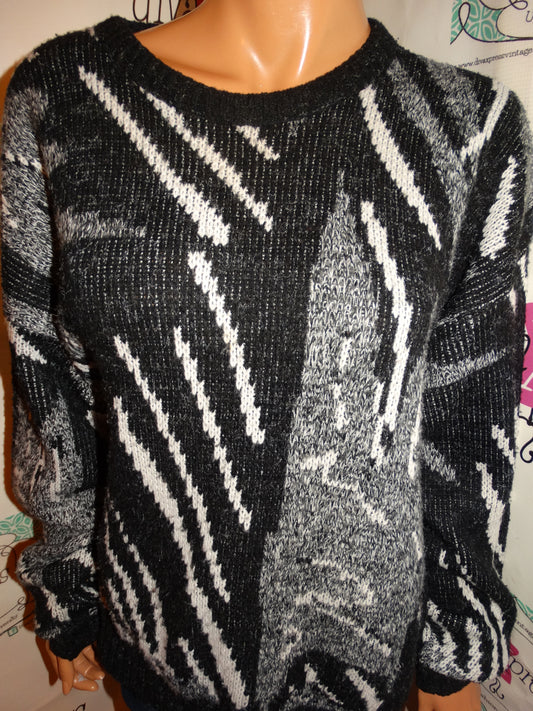 Vintage New Look Cream/Brown Gray Throw Blouse Size L