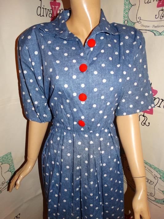 Vintage New Looks Blue/White Polka Dot Jean Dress Size M