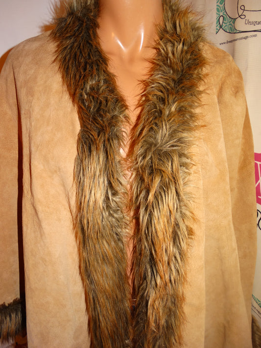 Vintage NewPort News Suede Faux Fur Lined Poncho Size XL-2x