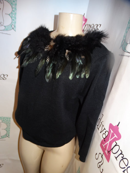 Vintage O dressy Black/Gold Beaded Shingle Crop Top Size S