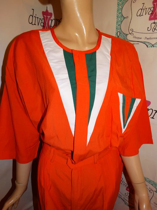 Vintage Oak Street Orange/White/Green 2 Piece Pants Set Size XL