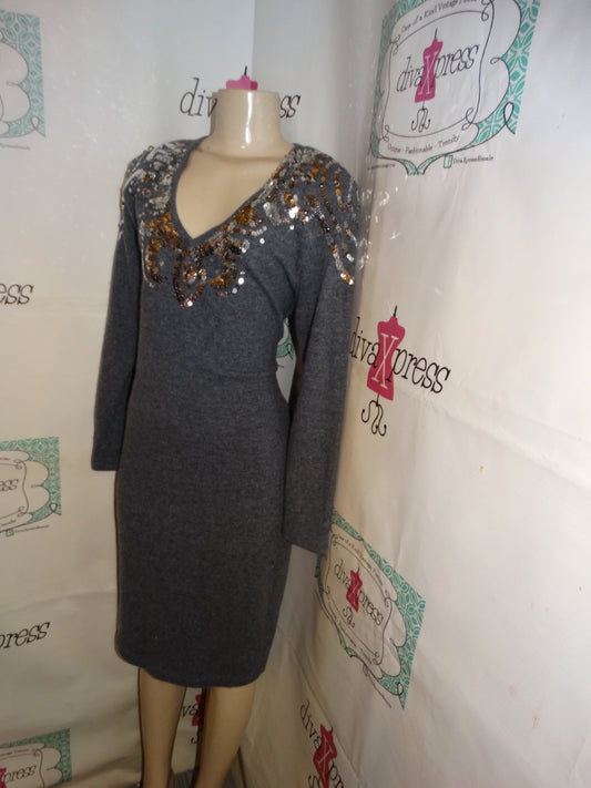 Vintage Outlander Gray Siliver Sequins Sweater Dress size L