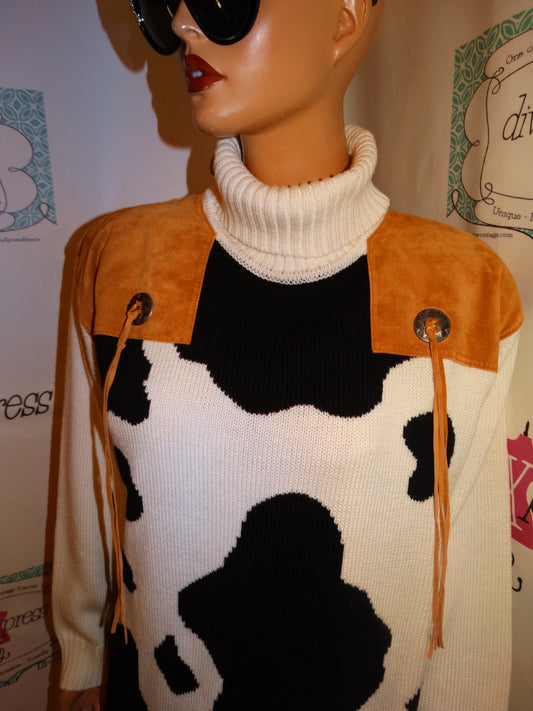 Vintage Outlander Cream Suede Patch Cow Sweater Size 1x