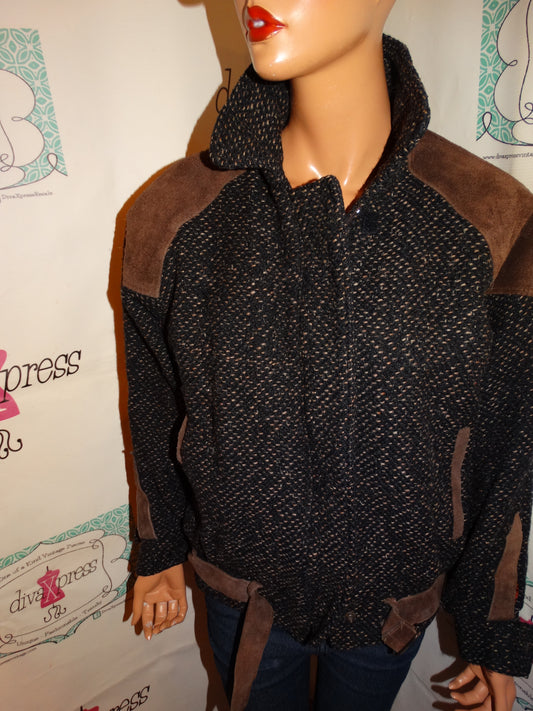 Vintage Otello PElle Black Suede Collar Jacket Size M