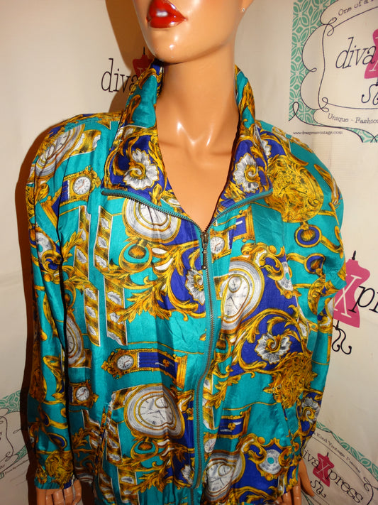 Vintage Outbrook Turquoise/Purpel Versace Style Bomber Jacket Size L
