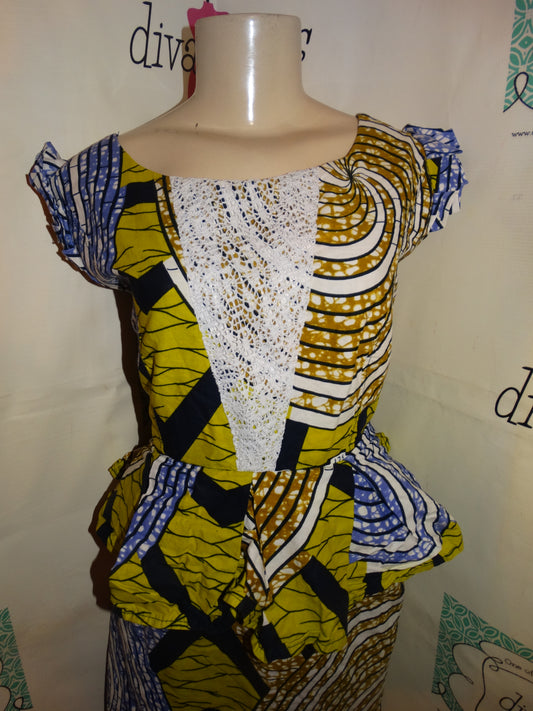 Vintage Peplum Purple/Lime Green Dress Size XL