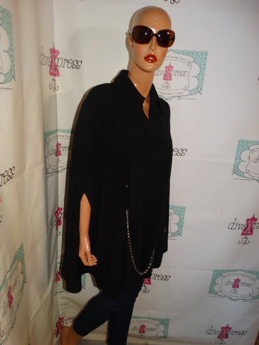 Vintage Peter Nyguard Black/ Silver Beaded Poncho Size L-1x
