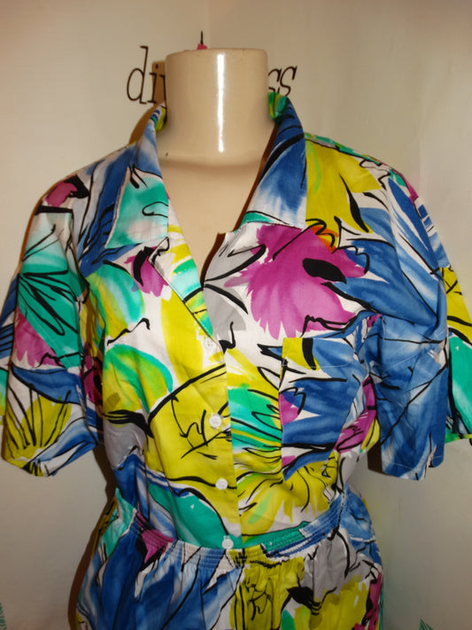 Vintage Personal White Collorful 2 Piece Short Set Size XL