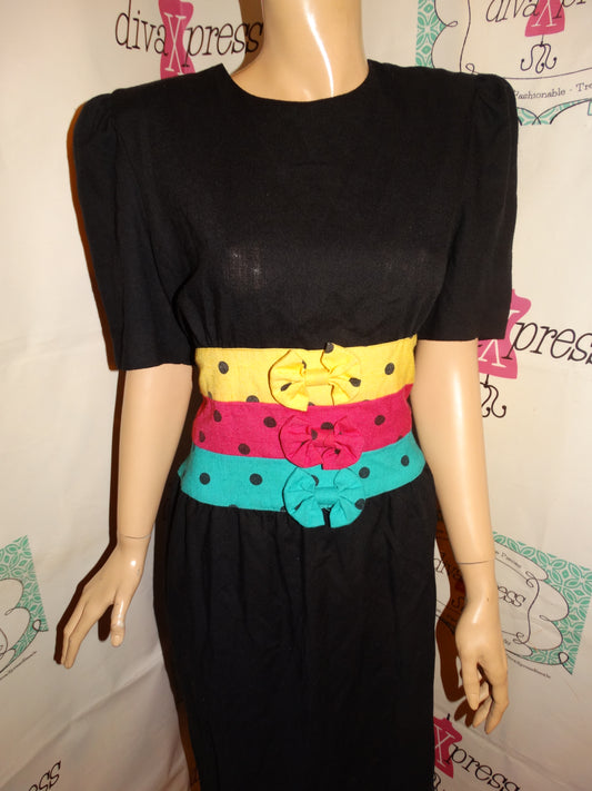 Vintage Perwinkle Black Colorful Dress Size M