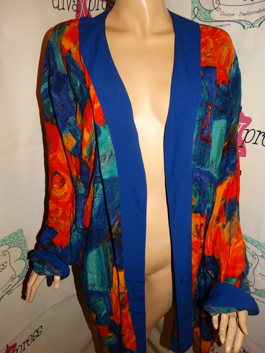 Vintage By Krush Royal Blue Floral Blazer Size XL