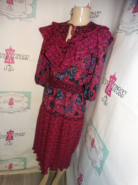 Vintage Pink Colorful Ruffle Dress Size S