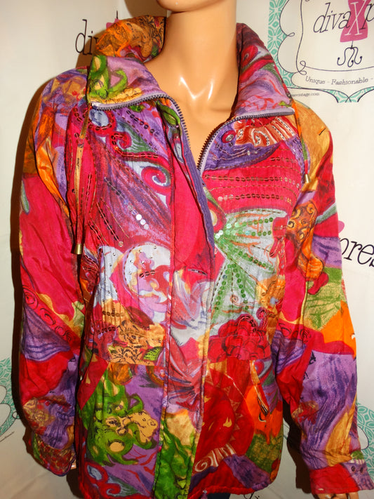 Vintage Pink Colorful Sequins Jacket Size 1x